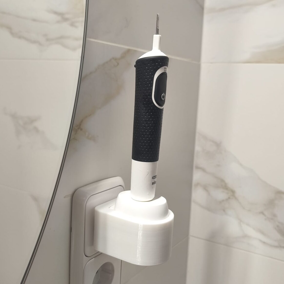 La base soporte para cargador de cepillo eléctrico Braun / Oral-B es un accesorio diseñado para mantener el cargador firmemente sujeto al enchufe, evitando que se desplace o caiga del lavabo.