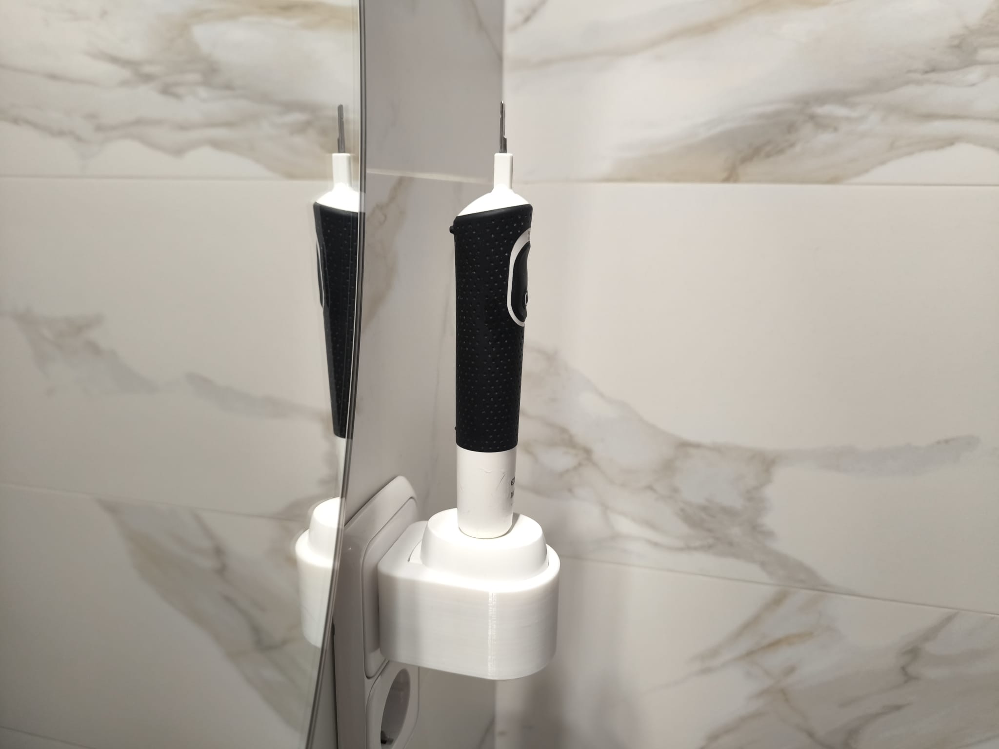 La base soporte para cargador de cepillo eléctrico Braun / Oral-B es un accesorio diseñado para mantener el cargador firmemente sujeto al enchufe, evitando que se desplace o caiga del lavabo.